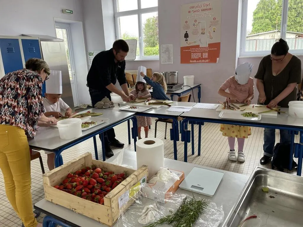 « On ne s’embête plus, je fais travailler les enfants directement ! » lance, dans un éclat de rire, Clément Gomez, le chef cuisinier d’API restauration à la Cuisine unique de proximité (CUP) de Saint-Cornier-des-Landes, en regardant parents et enfants découper des petits bouts de rhubarbe. Les plus grands ont des ...