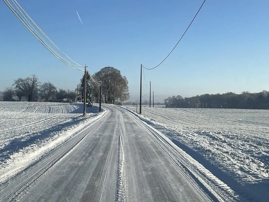 Une route enneigée à Cuissai, près d’Alençon, ce mardi 6 janvier 2026. © Ouest-France