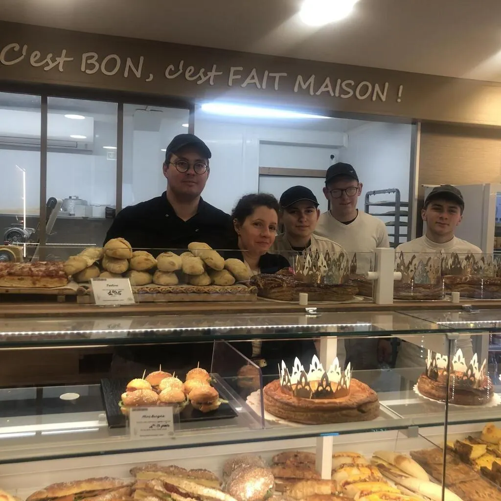 Claire et Cédric Coquelin, boulangerie de La Madeleine, avec Aleksandre ouvrier boulanger, Eliot apprenti boulanger, Anna apprentie pâtissière ; Améline vendeuse salariée de la boutique est absente de la photo. © Ouest-France