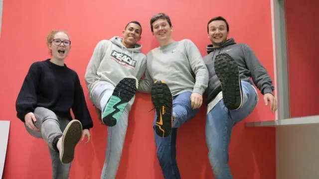 Nina Hopin (1re année), Sully Angama (1re année), Valérian Chapon (2e année) et Hugo Gonzalès (2e année), tous membres de l’association Les Pieds ornais. © OUEST-FRANCE