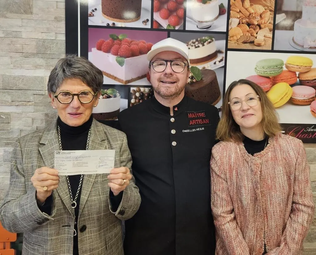 Pour la deuxième année consécutive, Nicolas et Aurore Chastellier, de la boulangerie-pâtisserie Aux Douceurs corbenoises, ont remis un don à la Ligue contre le cancer, vendredi 8 novembre 2024, après une opération de vente d’éclairs parfumés à la rose.
