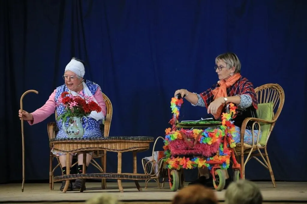 Les Tich’ladies, deux jeunes mamies, habitantes de Ticheville, dans l’Orne, proposent leur spectacle, dans le cadre du Téléthon 2022.