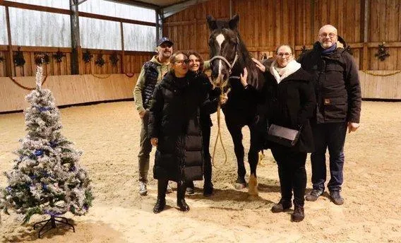 Le cheval noir, étoile blanche sur le front, c’est Waouh ! Regard fier, il fixe l’objectif, habitué à l’exercice et, un peu… cabotin ! Il va de nouveau travailler avec des lycéens.