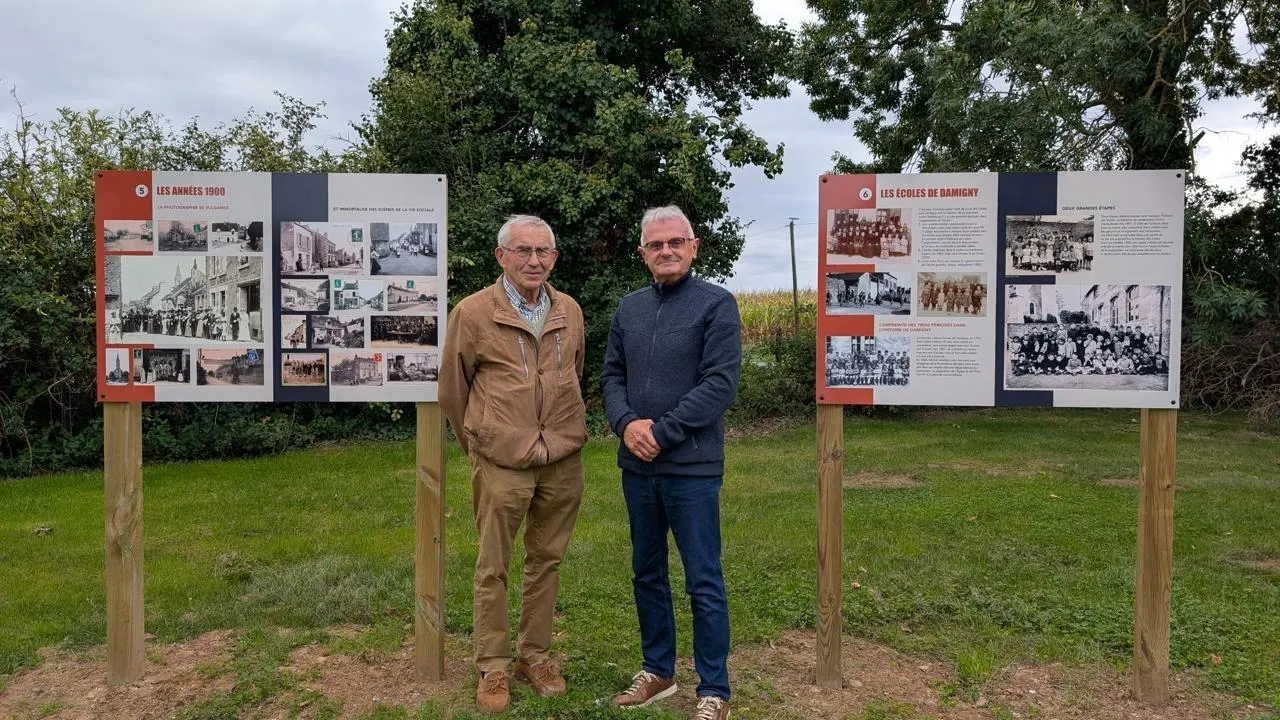 Vendredi 19 septembre 2025, sur l’aire de pique-nique de la voie verte, a été inaugurée une exposition permanente, à ciel ouvert, qui trace l’histoire de Damigny. Cette exposition est le fruit d’une étroite collaboration entre le Département, la commune et l’association Histoire et patrimoine de Damigny. Collaboration qualifiée par Guy Fournier, président de l’association, de  déterminante pour mener à bien un tel projetÂ