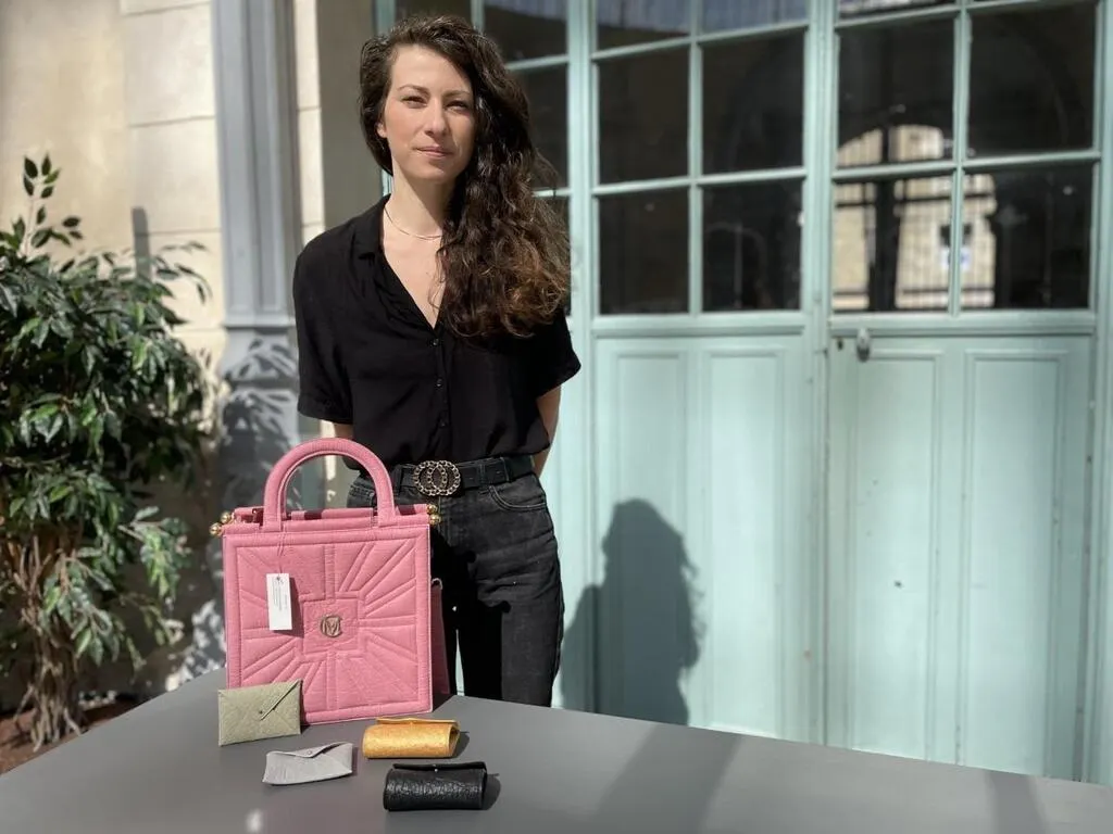 Clémence Coupry, installée dans l’Orne, confectionne des sacs et des accessoires de maroquinerie en matière végétale. © Ouest-France