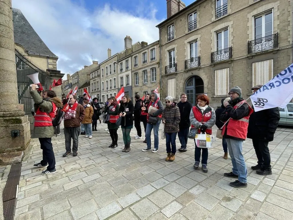 Le mot d’ordre de l’intersyndicale ornaise, c’était de donner de la voix, ce mardi 13 février 2024, devant la préfecture à Alençon où se tenait le conseil départemental de l’Éducation nationale. © Ouest-France