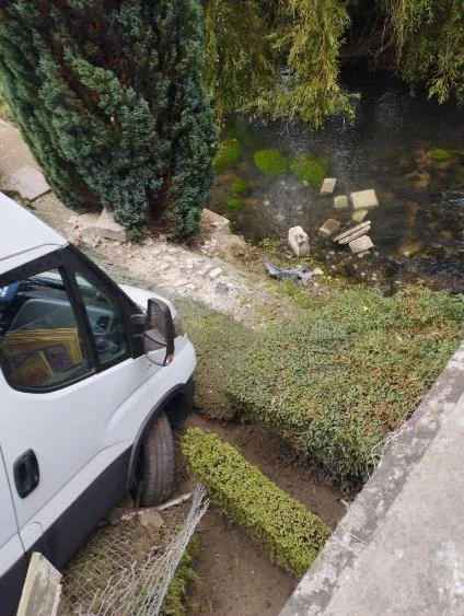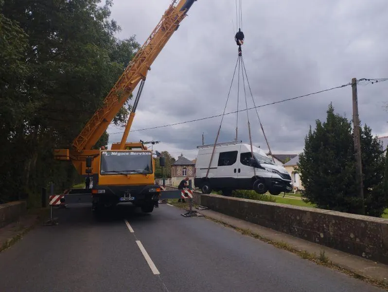 Dans l’Orne, un fourgon repêché par une grue après avoir heurté un mur au bord de la Dives... |