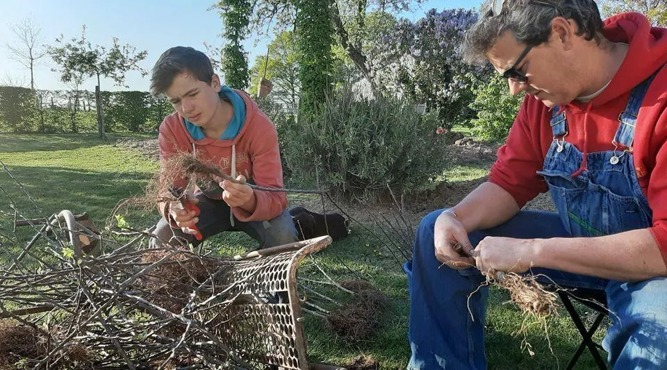 Vendredi 17 avril. Grégoire Ferré et son fils Gabin en pleine séance de greffage. © La Maison Ferré