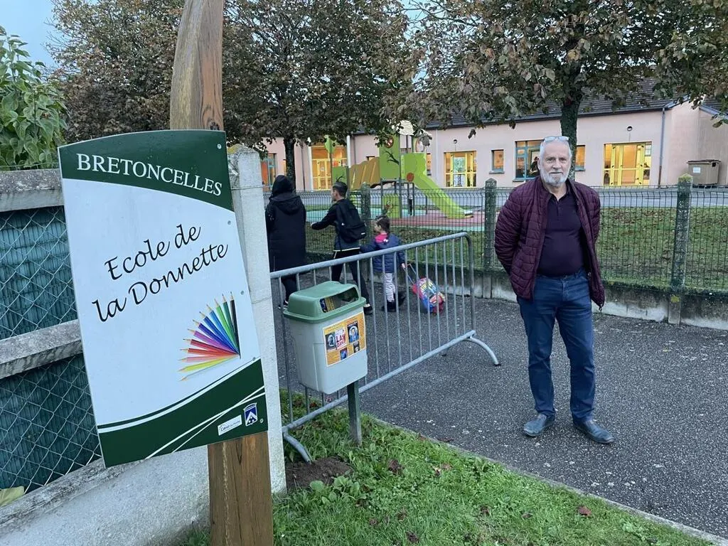 Daniel Chevée, maire de Bretoncelles (Orne), était présent ce vendredi matin devant l’école primaire de la commune où était scolarisé le plus jeune fils de Milly Akriche Ducrou. © Ouest-France