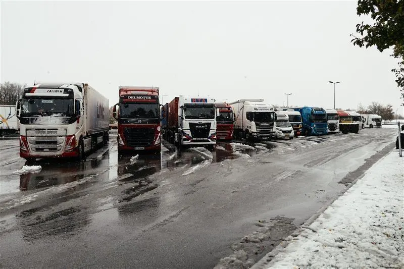 La circulation est interdite sur une grande portion de l’A28 entre Sées et Orbec, les véhicules sont invités à sortir dès que possible. Des chauffeurs patientent, notamment sur l’aire de la Dentelle, au nord d’Alençon. © Ouest-France