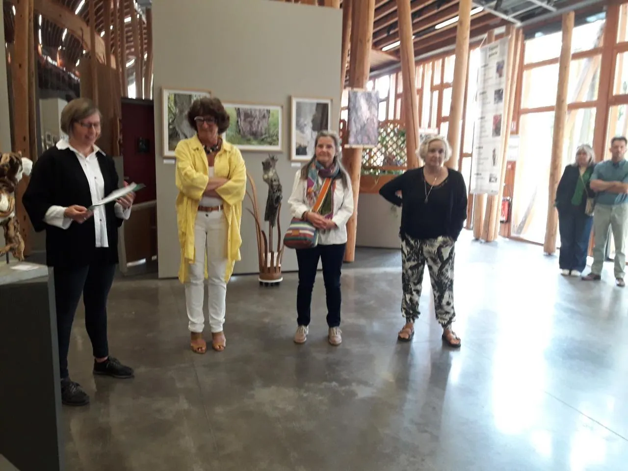 De gauche à droite : Anne Gouelibo, conseillère tourisme de Flers agglo ; Béatrice Chauvet, sculptrice ; Marie-Christine Chantrait, photographe ; et Lucie Goudard Lesteven, photographe. © Ouest-France