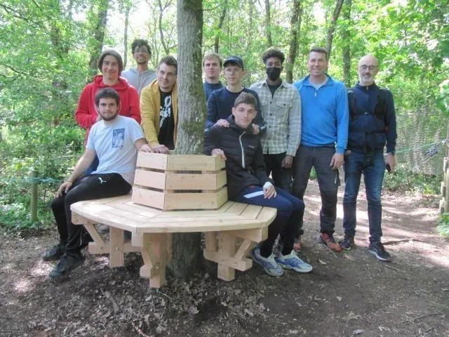 Les élèves du lycée Laplace de Caen (Calvados) ont installé leur « chef-d’œuvre » de fin d’année d’étude : un banc autour d’un arbre au parc accrobranche de La Roche d’Oëtre, dans l’Orne.