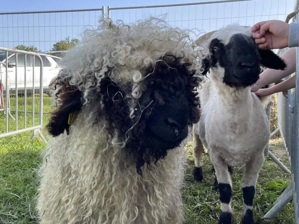 Ces moutons Nez noir du Valais ont attiré de nombreux curieux à la foire de Montilly-sur-Noireau, dans l’Orne, ce samedi 7 octobre 2023. © Ouest-France