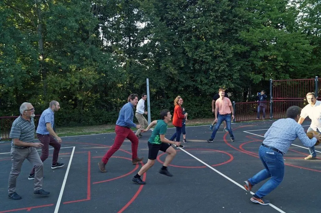 À Saint-Pierre-d’Entremont, les élus ont joué au basket-ball au city-stade. © Ouest-France