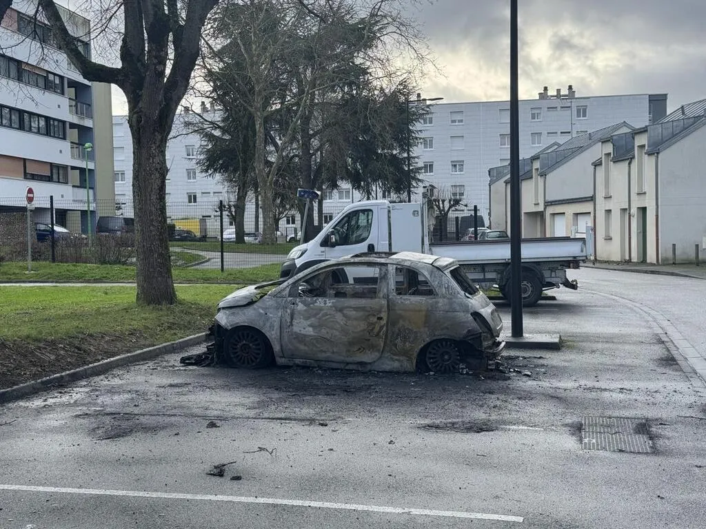 Une voiture a brûlé rue Rhin-et-Danube à Alençon (Orne), ce lundi 6 janvier 2025. © Ouest-France