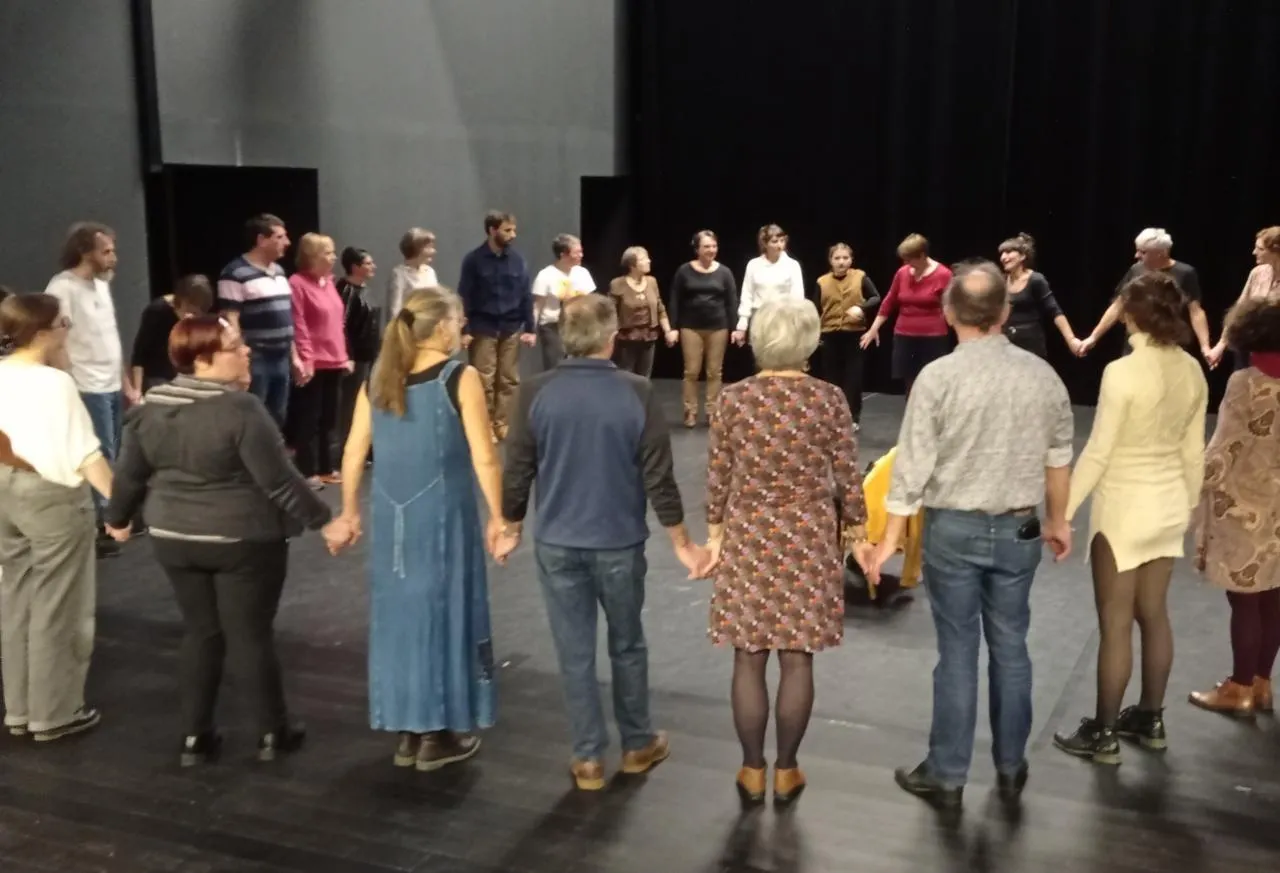 Une belle ambiance au théâtre municipal, hier, à l’occasion du rendez-vous proposé par la Ville et la Communauté de communes. Perrine Vrignault, chanteuse accordéoniste, a organisé deux ateliers. En matinée, trente-sept domfrontais qui se sont initiés aux danses poitevines. Ils étaient dix l’après-midi pour un atelier chorale, avec un travail sur le chant polyphonique.