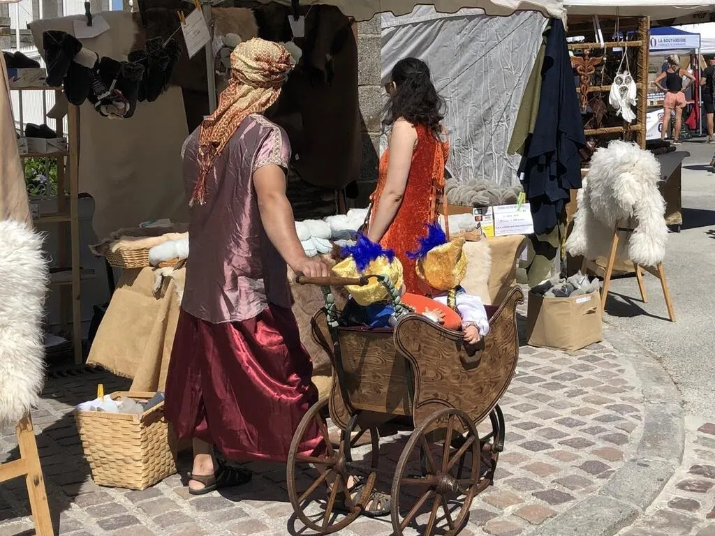 Quelques mètres plus loin, un homme propose des graffitis éphémères, les motifs sont évidemment dans le thème médiéval. Le marché s’étend jusqu’à l’église. On peut y retrouver des panoplies du parfait chevalier pour les enfants, ou encore des bijoux pour livres. Dans les allées, les langues se mélangent, on peut entendre des Anglais, mais aussi des Néerlandais. Les Médiévales vont attirer de nombreux touristes tout le week-end avec des spectacles de chevaliers et un spectacle de feu. Le marché est à retrouver jusqu’à dimanche.