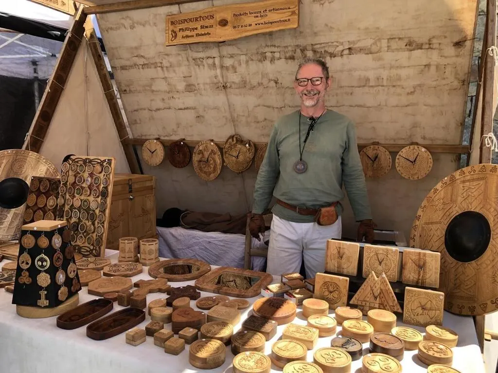 Les Médiévales, en plus de mettre à l’honneur une époque marquante de l’histoire, permettent aux artisans de faire connaître leur travail. C’est le cas de Philippe. Cet ancien informaticien s’est reconverti il y a quatre ans. Il fabrique désormais de nombreux objets en bois comme des amulettes et autres petites boîtes, dans son atelier, dans les Yvelines. « C’est ma première participation ici. Je suis content, l’ambiance est agréable et je peux discuter avec les visiteurs », confie-t-il.