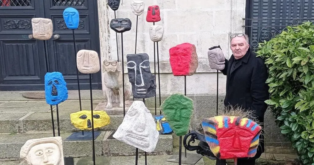 Pierre Boullé présentant chez lui quelques-unes de ses œuvres. © Ouest-France