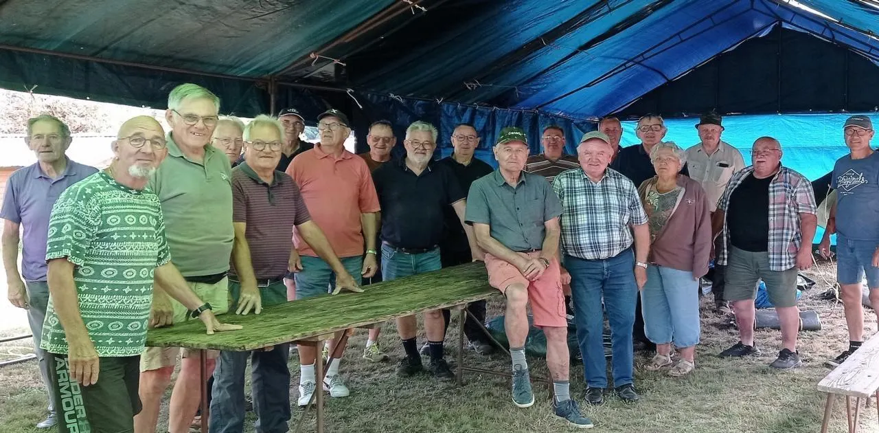 Une partie des trente bénévoles du Comité des fêtes de Saint-Front, jeudi, lors du montage du chapiteau. © Ouest-France