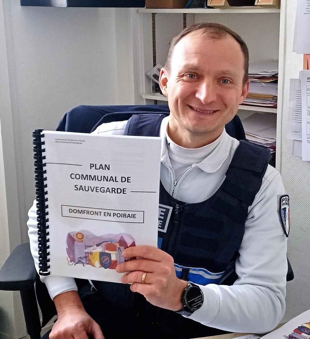 Vincent Salido, policier municipal, présente la nouvelle mise à jour du Plan communal de sauvegarde et les différentes responsabilités des vingt-sept référents relais établis dans le territoire. © Ouest-France