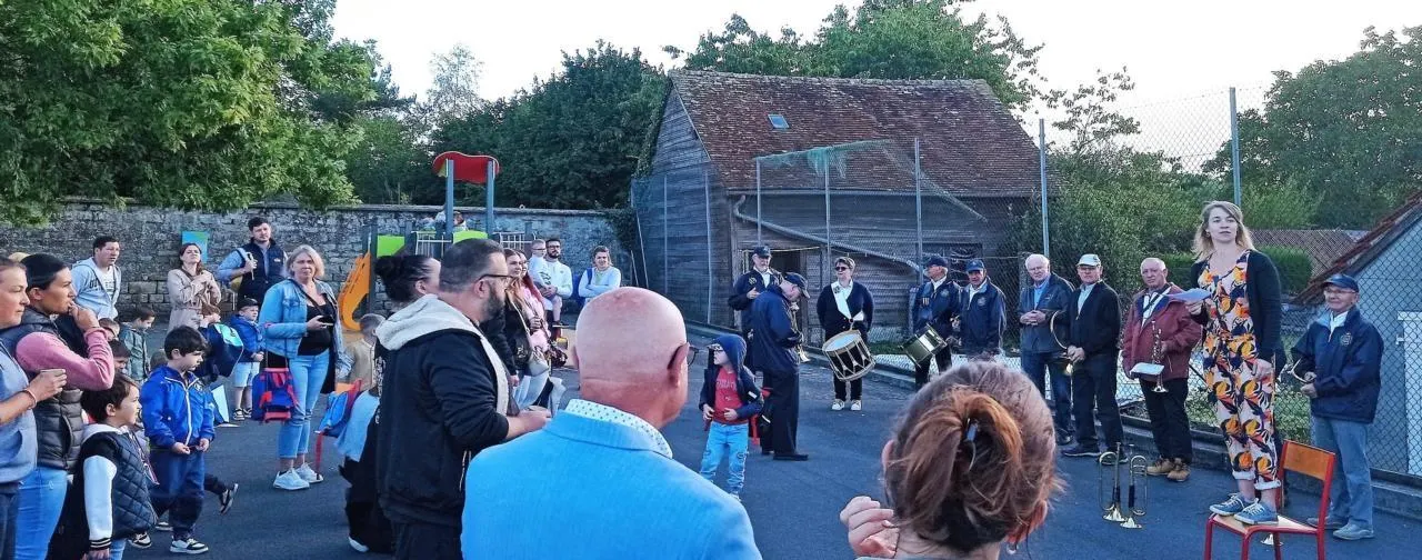 Ségolène Langevin a ouvert cette nouvelle année avec la fanfare municipale, devant les élèves accompagnés de leurs parents. © Ouest-France