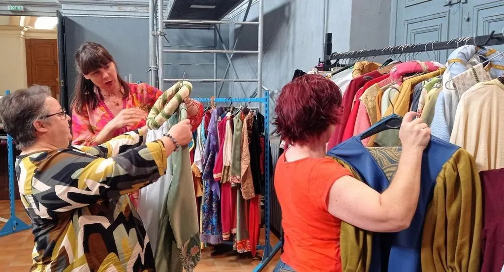 Rose écoutant les conseils de Rachel, bénévole, pour le choix d’un costume pour les prochaines médiévales. © Ouest-France