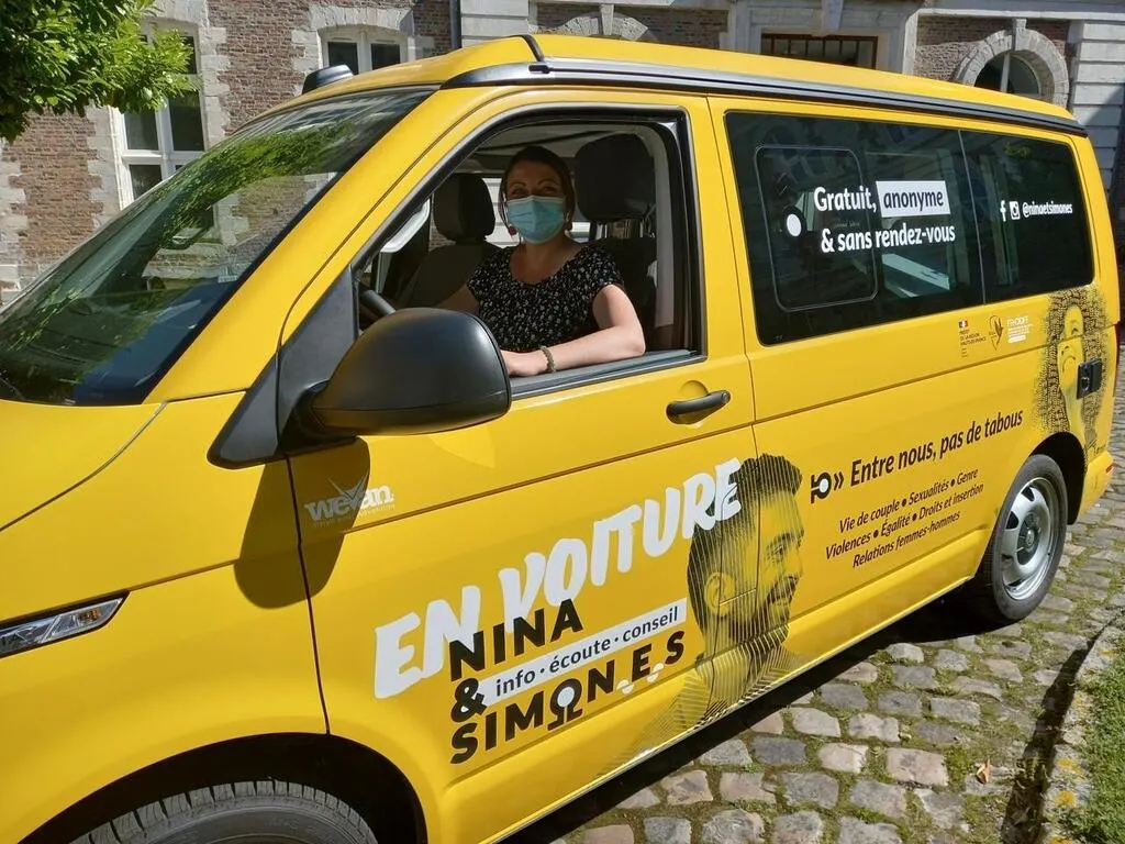 « En voiture Nina et Simon·e·s » offre une écoute de proximité sur différentes thématiques?. Deux vans comme celui-ci, circulent dans les départements du Nord et de l’Aisne. © Direction régionale aux droits des femmes Hauts de France