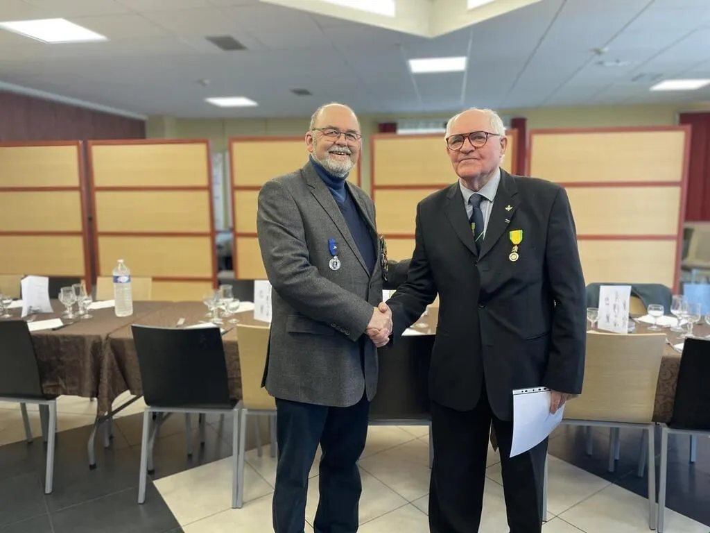 Philippe Auffret (à gauche) prend le relais d’Aimé Le Bot à la tête de la Société nationale d’entraide des médaillés militaires. © Ouest-France