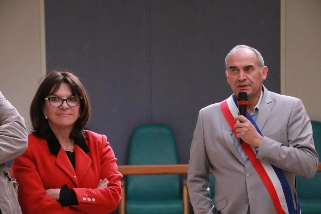 Le maire Didier Duvaldestin et la sénatrice Nathalie Goulet lors de l’inauguration de la maison CetteFamille, le 29 septembre 2022 à Échauffour. Ouest-France