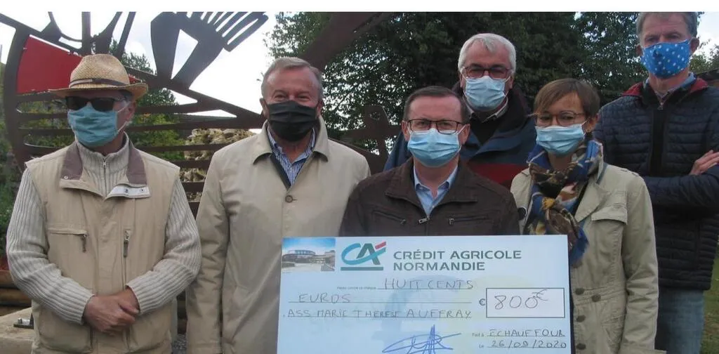 Le Crédit Agricole apporte son soutien financier aux associations de son territoire au travers du mécénat et d’un Fond d’initiative locale. C’est dans ce cadre qu’Alain Poirier, directeur de la caisse locale Gacé - Le Merlerault, et ses administrateurs, avec les représentants de la caisse locale d’Alençon, ont remis à Yves Héricourt, président de l’association Marie-Thérèse Auffray, la somme de 800 €. Cette somme a été attribuée pour participer financièrement à la mise en place d’une œuvre lors de l’inauguration du jardin créé en hommage à Marie-Thérèse Auffray, artiste peintre et résistante qui a résidé à Échauffour après la Seconde Guerre mondiale.