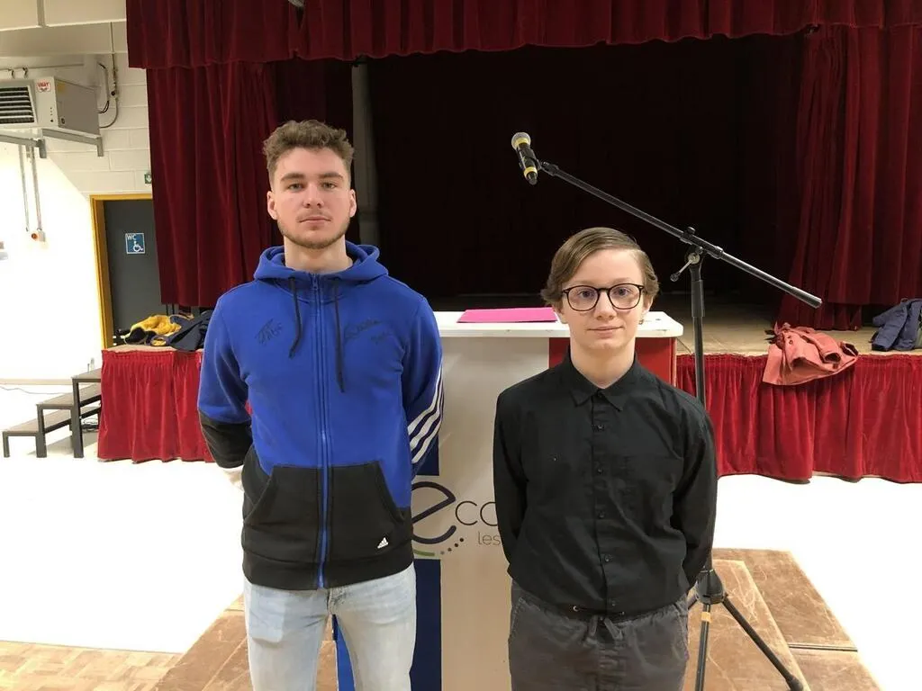 Le public a pu applaudir Manon Leroux, médaille d’or au concours du meilleur apprenti fleuriste de France et Jeune de l’année au concours On se bouge dans l’Orne, et Pierre Bissonnet-Ochin, maire du conseil des jeunes élu en octobre. © Ouest-France