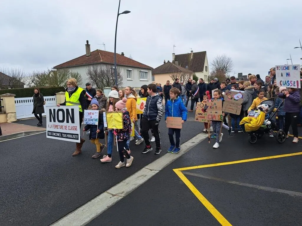 Lors de la manifestation de samedi 10 mars, les élèves, leurs parents et les élus ont déambulé dans les rues d’Écouché. Mairie d’Écouché
