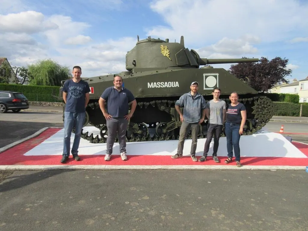 Placé en sentinelle à l’entrée d’Écouché-les-Vallées (Orne), le char Massaoua ( ou Massaouah) a été repeint et redécoré par les bénévoles de l’association Garand de la mémoire, du nom du fusil semi-automatique qui équipait les GI’s. Cette association basée à Saint-Rigomer-des-Bois (Sarthe) réunit des passionnés d’histoire et, plus spécialement, de la Seconde Guerre mondiale. « Notre but est de faire découvrir et de restaurer les monuments, sépultures ou matériels civils ou militaires laissés à l’abandon. Ce char est notre première grosse réalisation », explique Alexandre Canada-Bueno, son président.