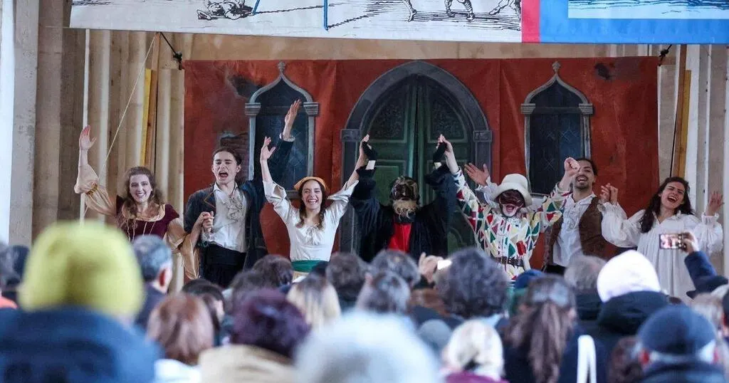 Cette pièce de Commedia dell’arte se joue dans une version sur tréteaux, en extérieur. © Dinamo Théâtre