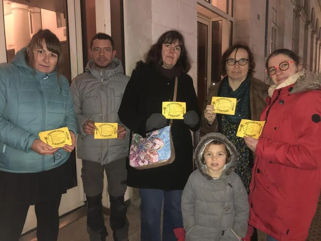Ces parents d’élèves sont venus à Alençon, jeudi 8 décembre, pour évoquer le sujet de la cantine scolaire de Radon. © Ouest-France