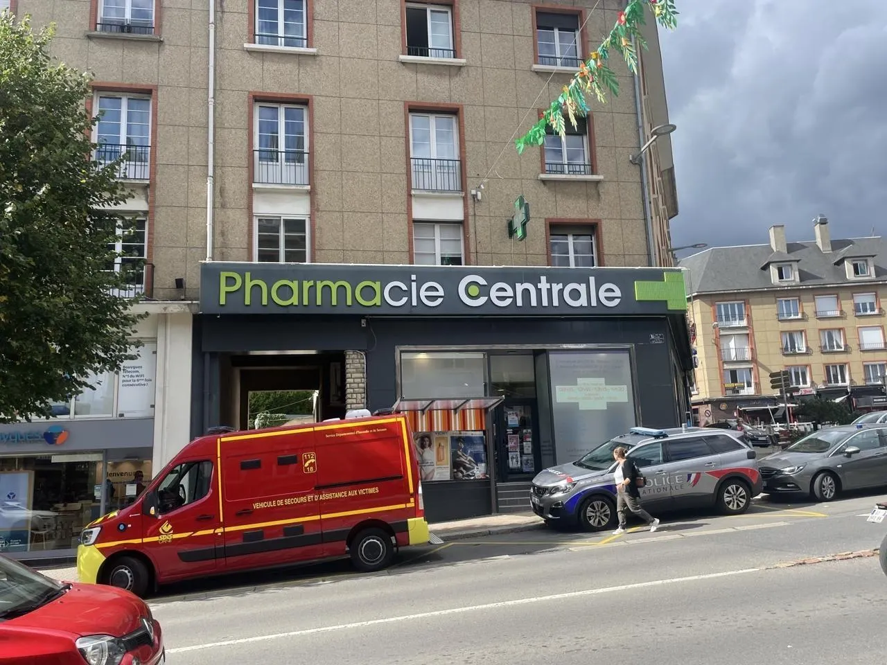 Les pompiers et la police sont intervenus dans le centre-ville de Flers, ce jeudi 28 août 2025. © Ouest-France