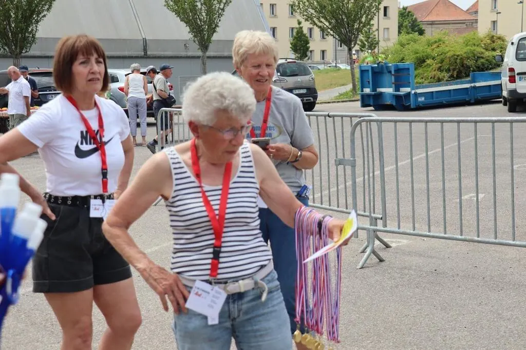 Micheline Bailly, 82 ans, qui détient le record de France 2022 du 100 m dans sa catégorie, a remis des médailles aux jeunes coureurs. Ouest-France