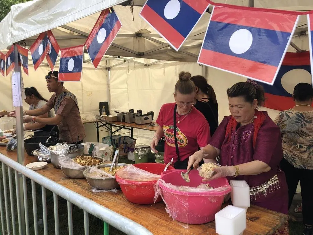 La Fête d’ici et d’ailleurs, c’est aussi un moment de restauration : ici, un stand de nourriture laotienne. Ouest-France