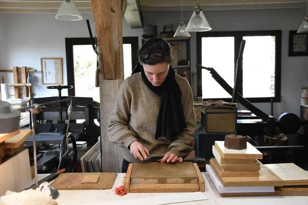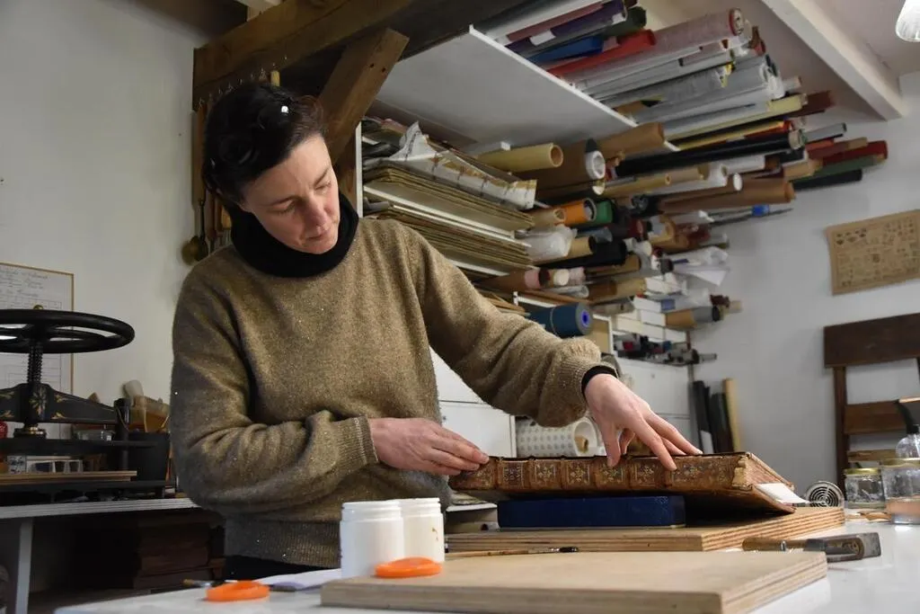Anne-Elisabeth Gillot est restauratrice et relieuse de livres à Mahéru (Orne). Le Haras national du Pin lui a confié la restauration de son patrimoine littéraire.