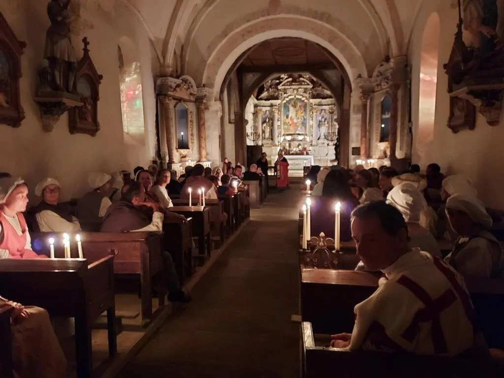 Dans le cadre des préparatifs du spectacle Le Mystère du dernier duel, qui fait son retour au château de Carrouges (Orne), pour trois nouvelles représentations les vendredi 9, samedi 10 et dimanche 11 septembre 2022, 90 figurants en costume ont assisté à une reconstitution du mariage de Jean et Marguerite de Carrouges, en l’église Sainte-Marguerite. Les images captées dimanche 21 août seront projetées sur le château, pendant le spectacle.