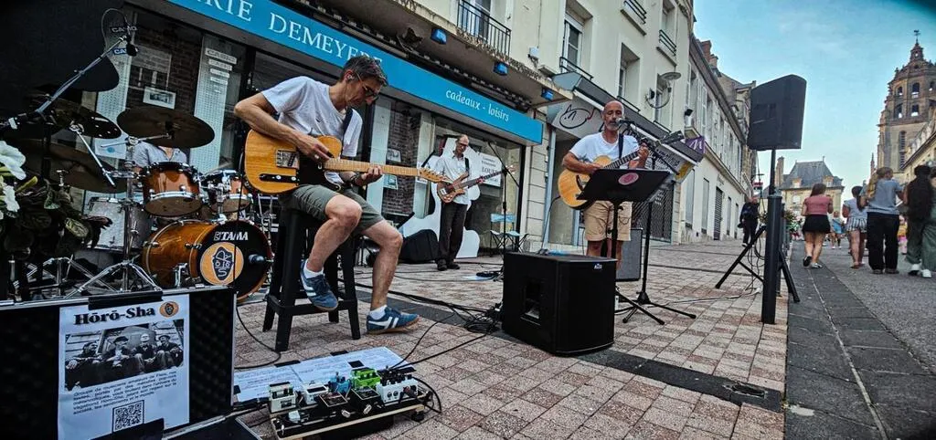 Place Henri-IV, le groupe Horo-Sha, venu de Flers, fait une pause entre deux sets : « Ça fait deux ans qu’on joue ensemble », explique l’un des musiciens, lunettes de soleil et guitare en bandoulière. Pour ces artistes, la soirée a du sens : « La fête de la Musique, c’est un vrai moment de connexion musicale avec le public. »