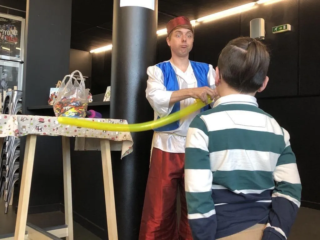 Puis retour à l’intérieur pour assister au spectacle de marionnettes et de magie. Assis dans les premiers rangs, les spectateurs et spectatrices les plus impliqués ont joué avec le magicien. De jeunes volontaires ont même réalisé leur propre tour.