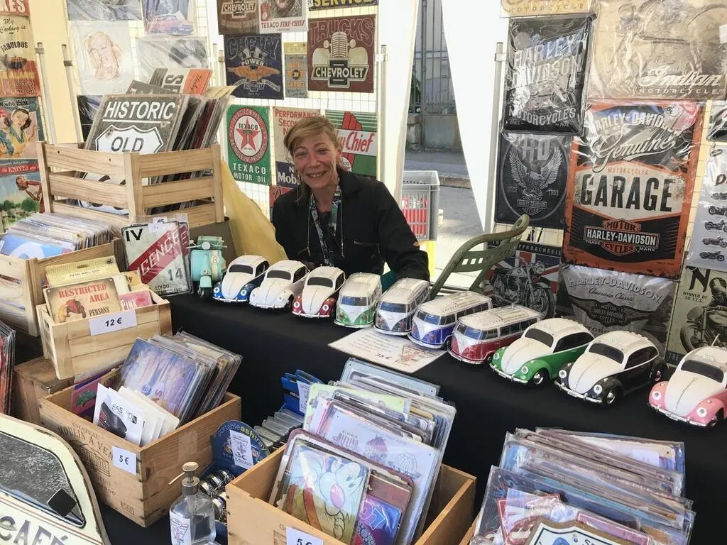 Sur le stand de sa boutique Histoire de décos, Virginie propose toute une série d’objets et de plaques vintage qui viennent des États-Unis et d’Angleterre. Ouest-France