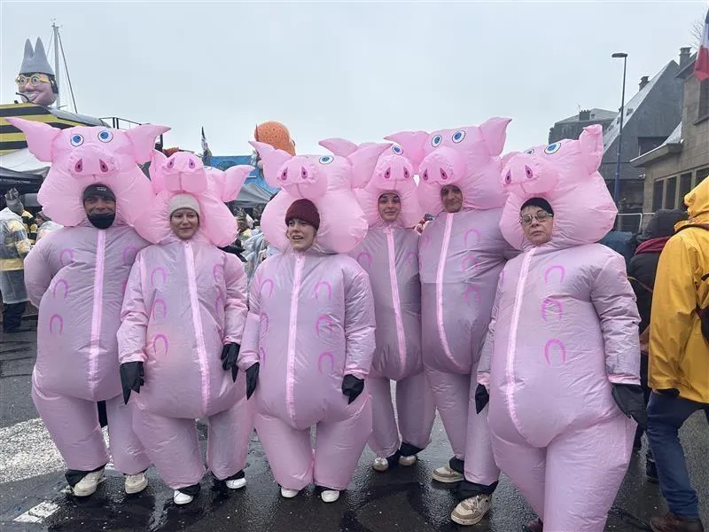 Des cochons qui sont venus de Fresnay-sur-Sarthe (Sarthe). Leur premier carnaval de Granville. \