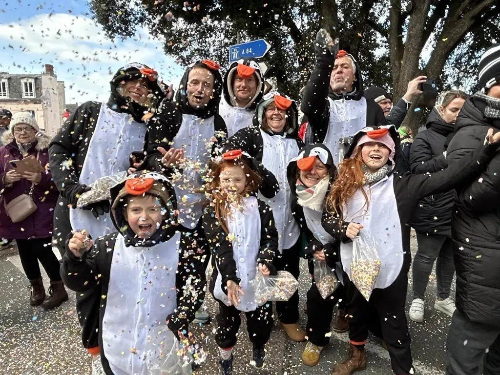 Attaque de confettis par cette famille de pingouins. Ouest-France