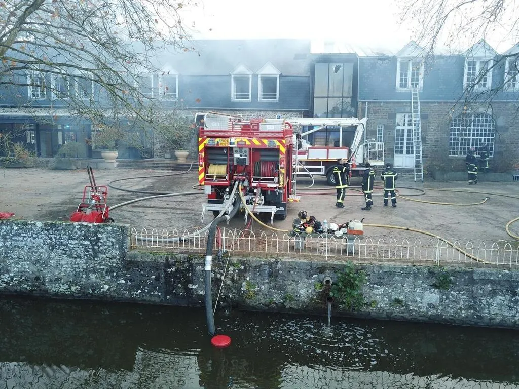 photo  dès 4 h 30 du matin, les premiers sapeurs-pompiers interviennent sur une partie du bâtiment de la mairie de flers, dans l’orne, en proie aux flammes.  ©  sdis 12