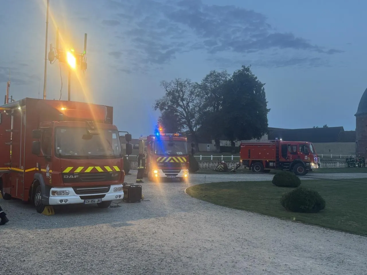 Une chaîne de commandement a été rapidement mise en place. « Six lances à incendie, dont deux aériennes ont été déployées. » Les pompiers puisent de l’eau dans les douves du château pour avoir une alimentation en continu.