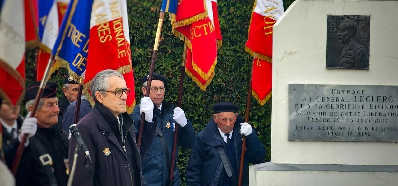 Ce dimanche 30 novembre 2025, à quelques centaines de mètres de l’entrée du village de Fleuré (Orne), les drapeaux se sont à nouveau levés pour rendre hommage au général Leclerc, mort en novembre 1947. Jeanne Lebarque, 17 ans, nouvelle porte-drapeau de l’association Vive la Résistance, tenait le sien comme l’héritière d’une histoire familiale.