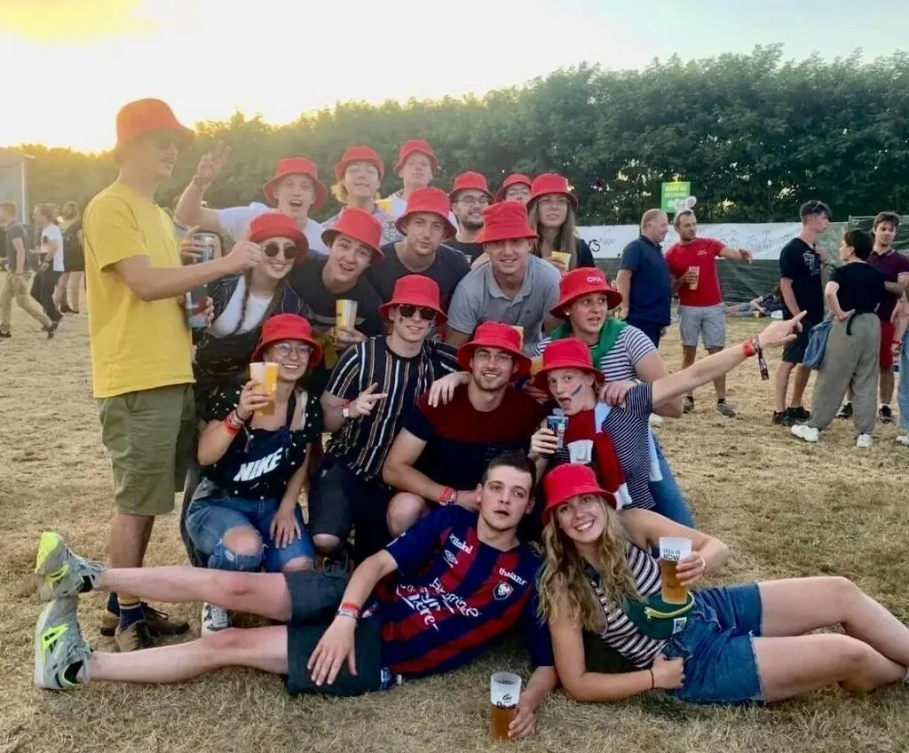 De magnifiques bobs rouges pour se repérer dans la foule : c’était peut-être la bonne idée de ce groupe d’amis. DR